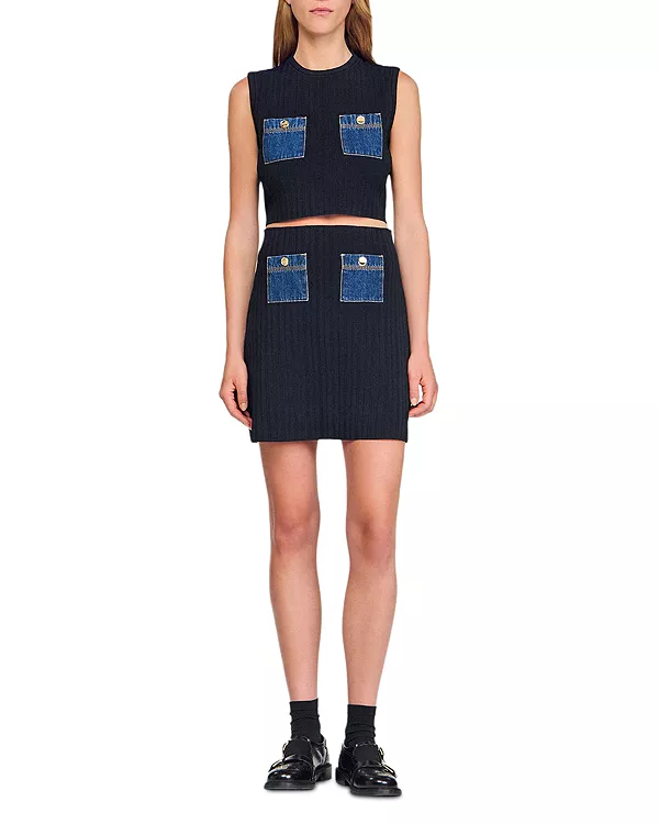 Мини-Юбка из трикотажа и джинсов Sandro, красный 23 869₽