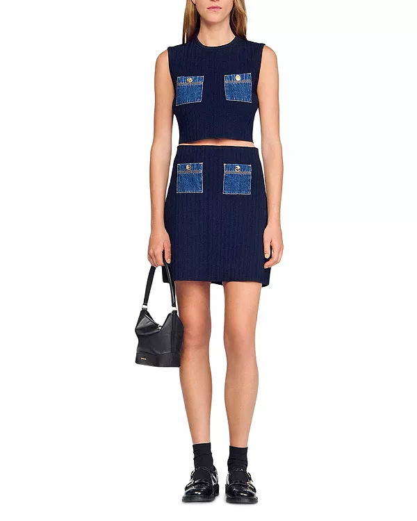 Вязаный топ из джинсовой ткани Sandro, синий 22 852₽