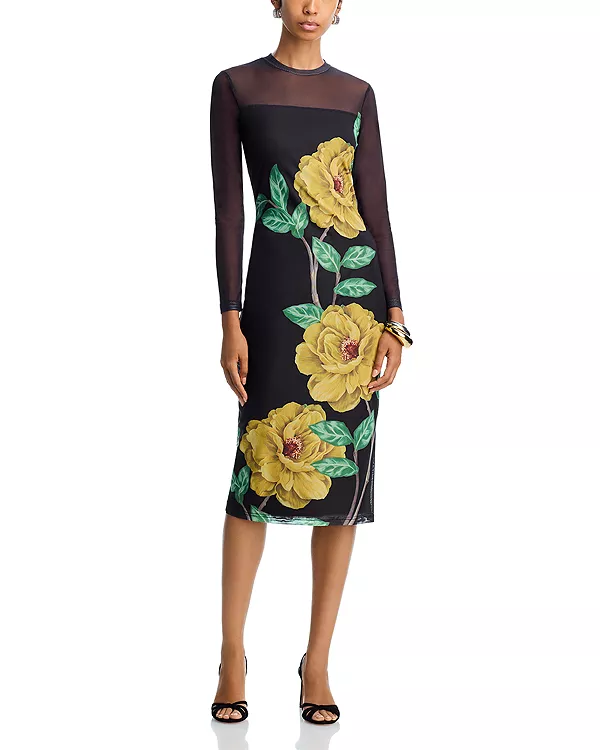 Сетчатое платье миди с цветочным принтом - эксклюзив Aqua, мультиколор