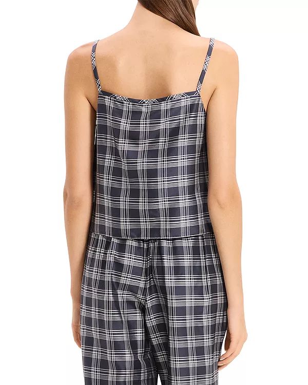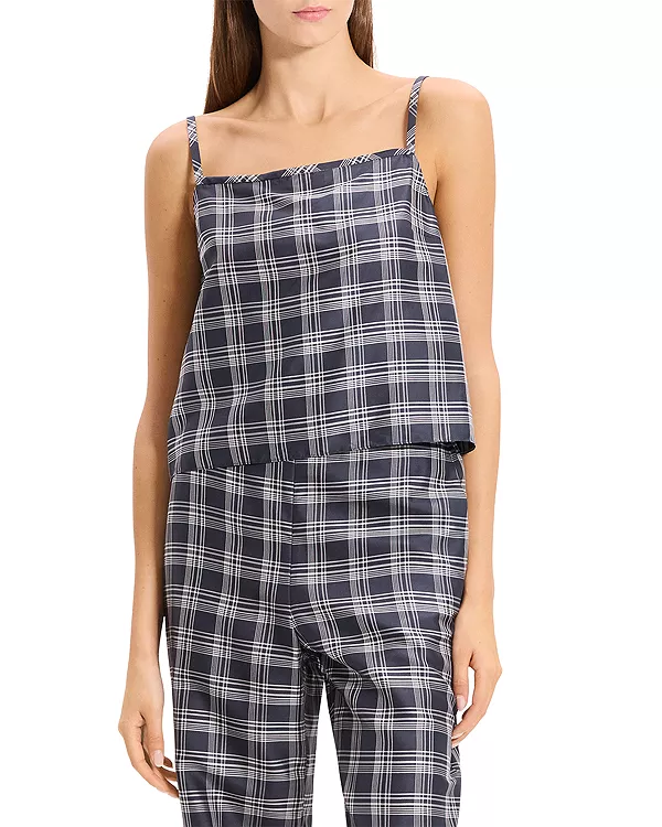 Шелковый топ в клетку с переплетенными лямками Theory, синий
