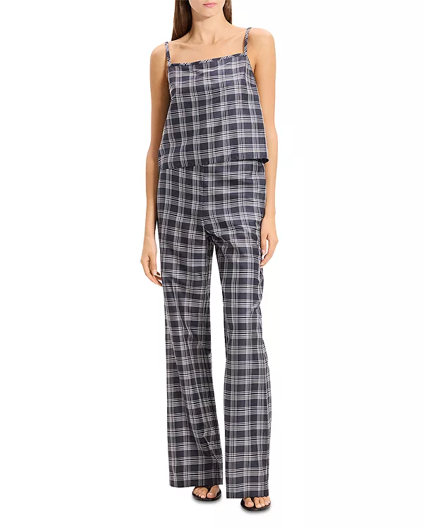 Шелковый топ в клетку с переплетенными лямками Theory, синий 25 978₽