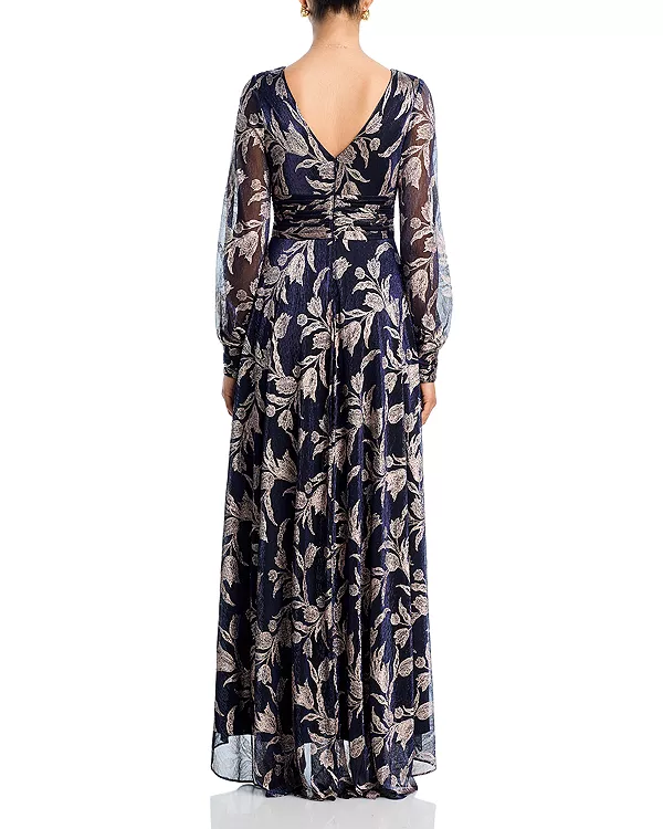 Платье с металлизированными листьями - эксклюзив Aqua, синий