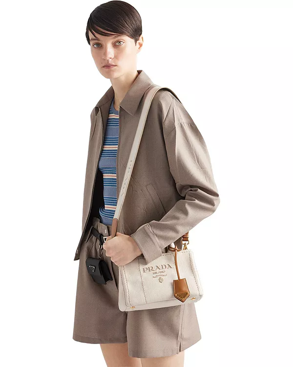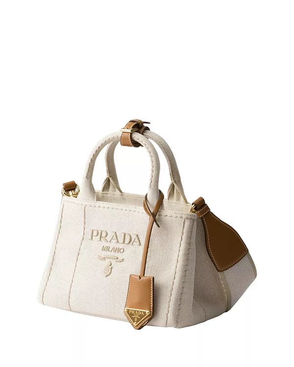Мини-Сумка Jardiniere из смесового льна Prada, белый 214 015₽