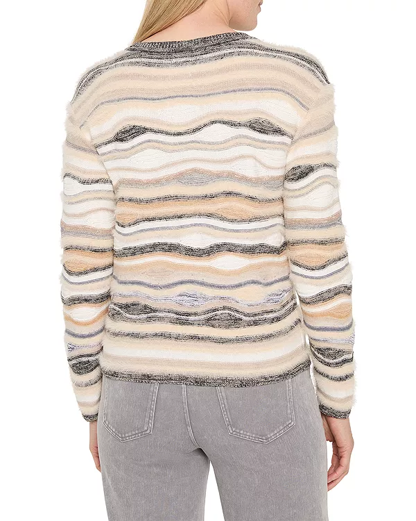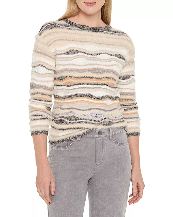 Бренд: Nic+Zoe Цвет: мультиколор Путешествие к совершенству в мире свитеров от NIC+ZOE. Этот свитер с приспущенными плечами, выполненный из смешанной пряжи, создающей эффектный волнообразный узор, дополненный толстыми и тонкими петлями, придающими ему естественный объем. Легкая пушистость смягчает образ, а сочетание нейтральных тонов делает его невероятно универсальным. Уютный, современный и ненавязчиво эффектный.