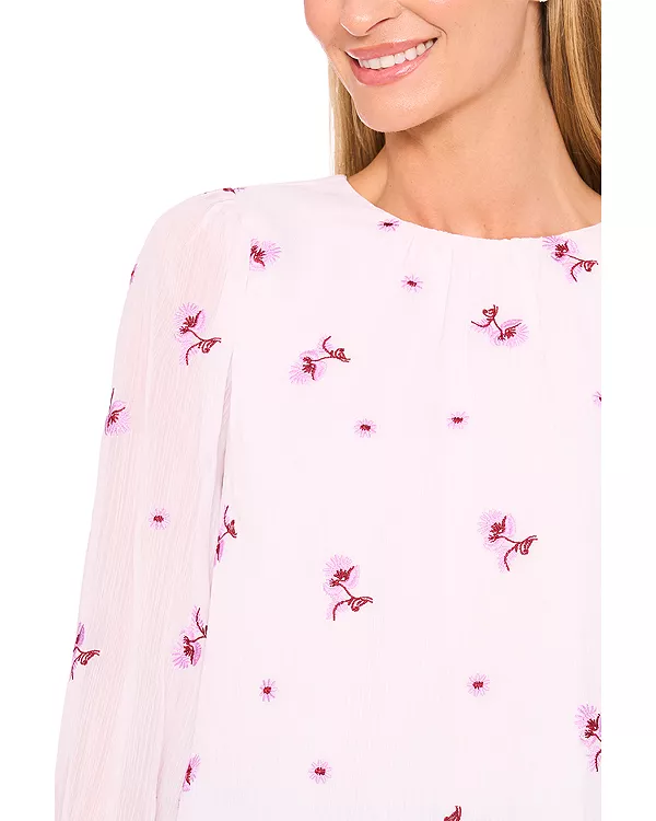 Вышитый топ с присборенными манжетами Cece, розовый 4 483₽