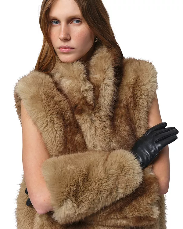 Длинные перчатки с манжетой из искусственного меха норки