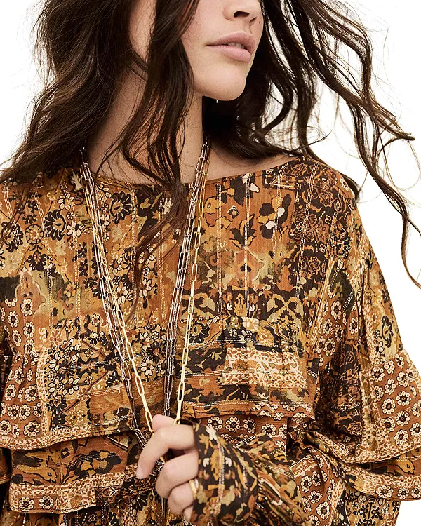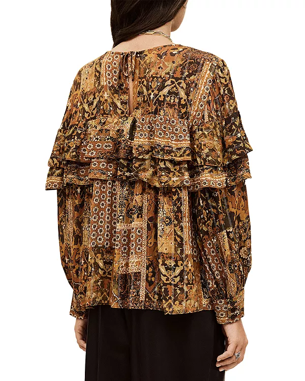 Многослойная оборка на кокетке спереди и сзади, на рукавах