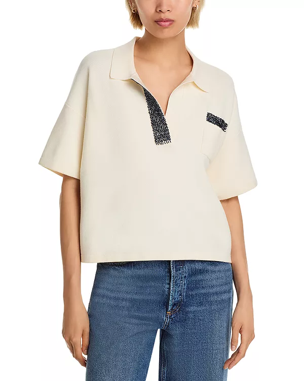 Воротник-поло с контрастной отделкой бисером
