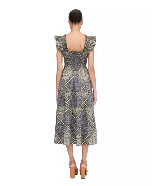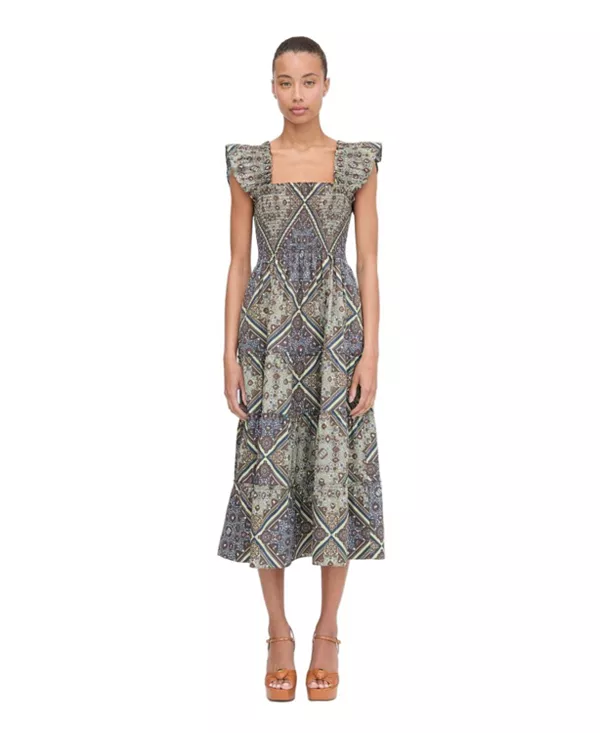 Платье Ellie - это платье А-силуэта с нашей фирменной эластичной сборкой, рюшами на плечах, многослойной юбкой миди и карманами.