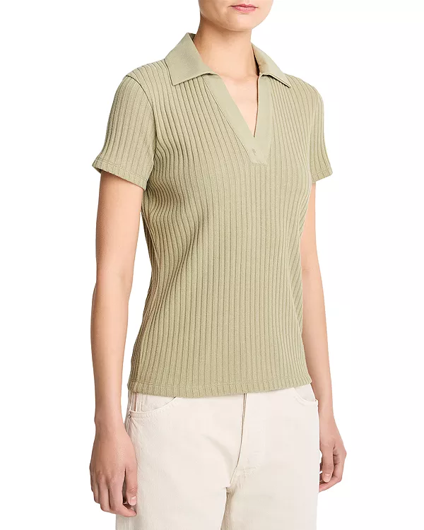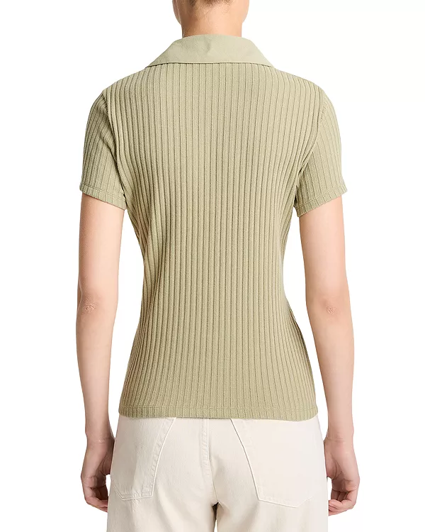 Вязаная рубашка-поло в рубчик Vince, зеленый