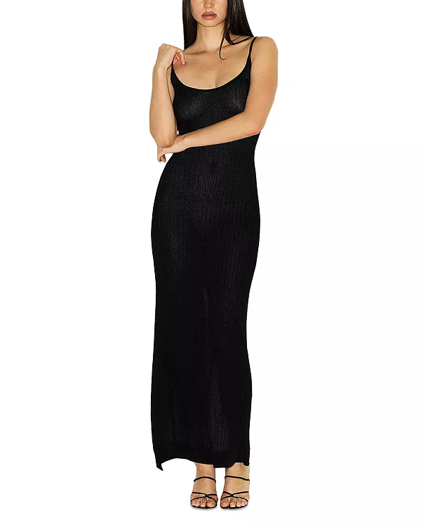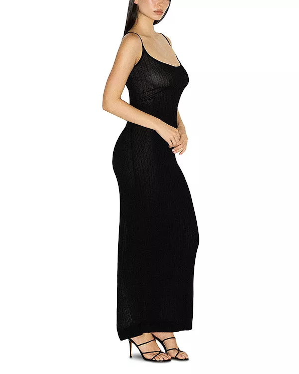 Создайте потрясающий летний образ в этом длинном платье, сшитом из новой фактурной трикотажной ткани Sheer Knit от SKIMS. Оно имеет вырез-лодочку, регулируемые бретели и разрез по центру спины по низу.
