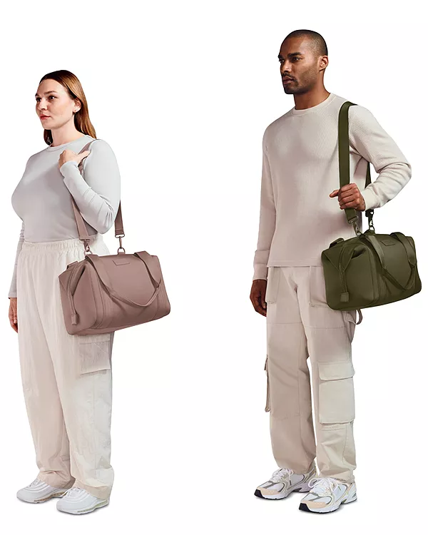 Особенности: Двойные ручки, высота 25 см Съемный регулируемый плечевой ремень, высота 66 см Размеры: 35,5 см (Ш) x 23 см (Г) x 19 см (В) Застежка-молния Внешний карман для телефона и отделение для ручки чемодана Внутреннее отделение для обуви, отделение для ноутбука, боковые карманы, большой карман на молнии, съемный эластичный чехол для ключей Логотип на передней части Подставка для ноутбука подходит для большинства 13-дюймовых ноутбуков Подкладка 100% высококачественный неопрен; подкладка: 100% переработанный полиэстер REPREVE Импортный товар