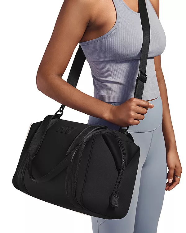 Бренд: Dagne Dover Цвет: черный В спортивную сумку Landon Carryall среднего размера помещается пара обуви и полный комплект сменной одежды, что делает ее лучшей универсальной сумкой для спортзала. Мягкий чехол для ноутбука надежно защитит ваши гаджеты, а отделение для обуви, карман и защитный карман для бутылки с водой обеспечат порядок в ваших вещах во время поездок. Нужно немного больше места? Боковые застежки-кнопки мгновенно меняют силуэт сумки и добавляют немного пространства. Среди органайзеров - эластичный ремешок для ключей, внутренние боковые карманы для аксессуаров и, снаружи, незаметный задний карман, чтобы ваш телефон всегда был под рукой.