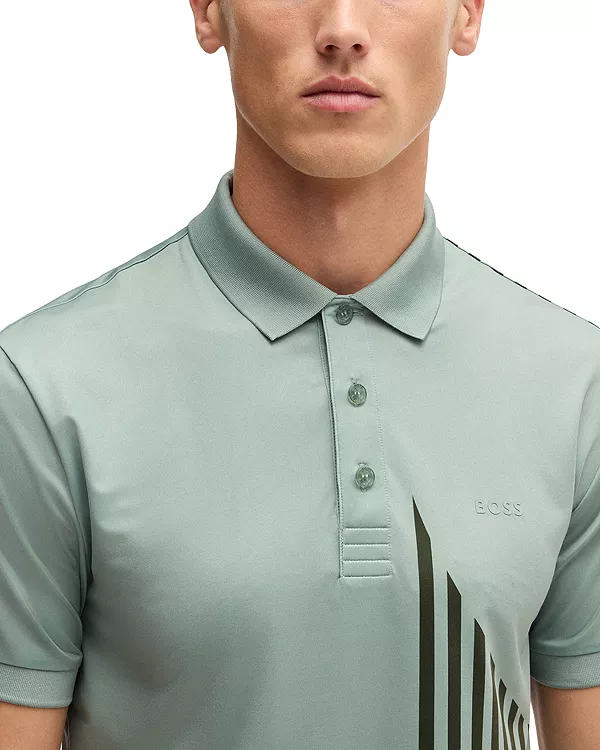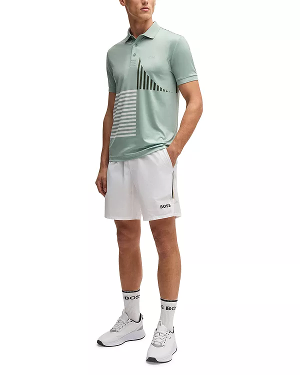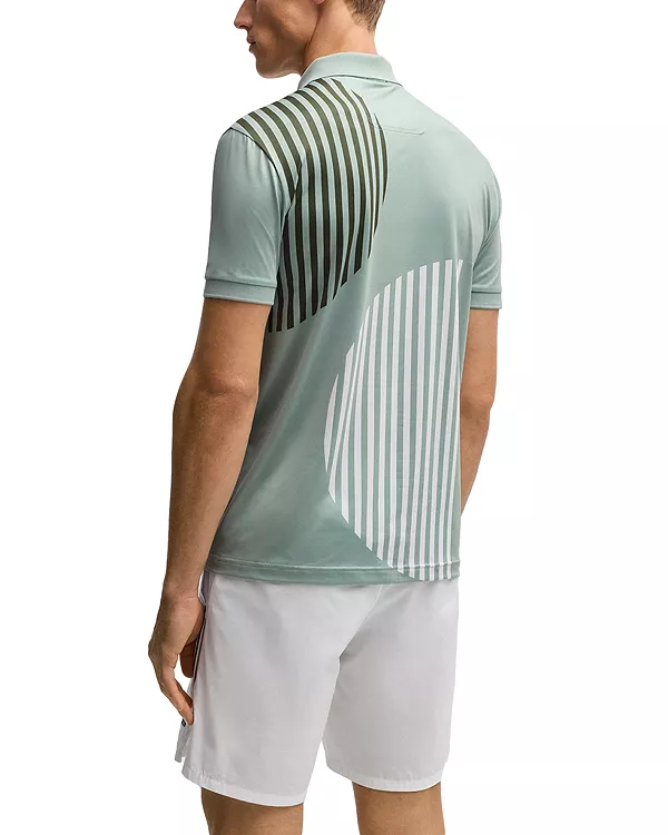 Надпись BOSS на левой стороне груди, полосатый принт спереди и сзади