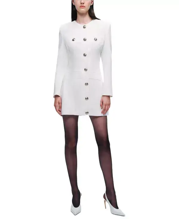 Особенности: Круглый вырез Это смелое, но вневременное мини-платье с подплечниками сшито из тканого материала, имеет стандартный крой и полную подкладку для создания структурированного силуэта. С длинными рукавами, классическим круглым вырезом и застежкой на кнопки спереди, оно сочетает в себе комфорт и современный стиль. Застежка на пуговицы спереди Без подкладки Импортный товар