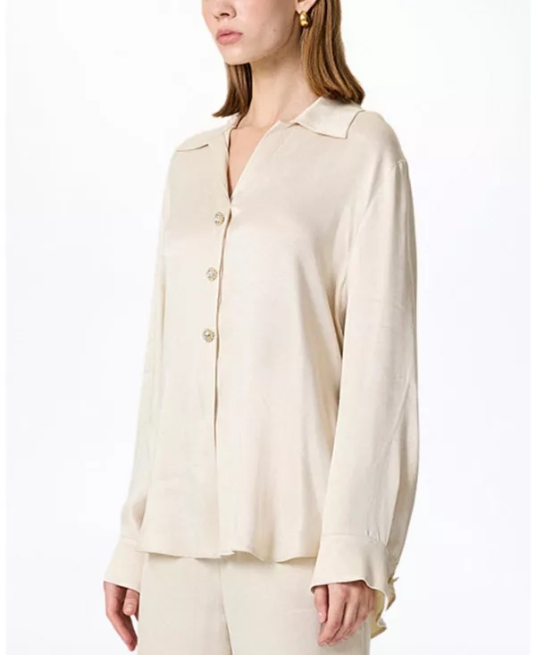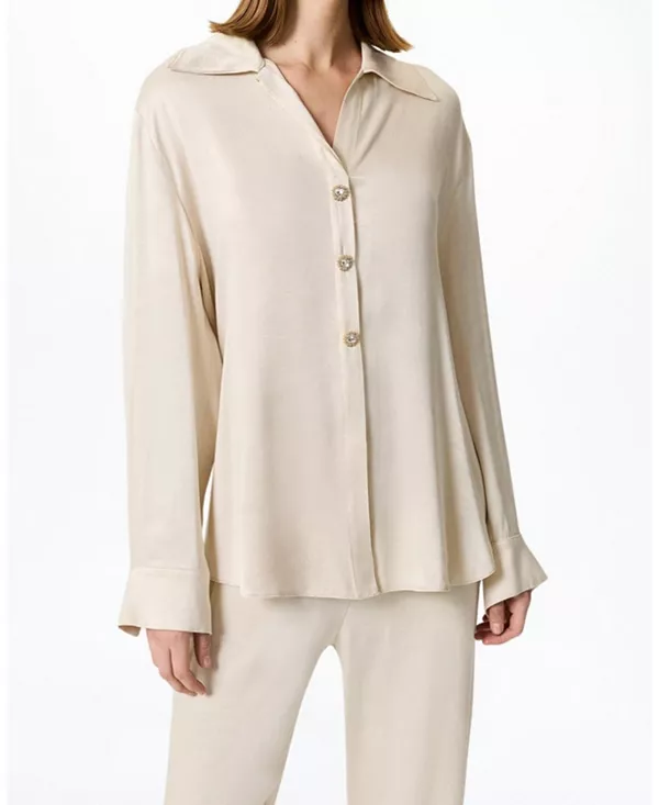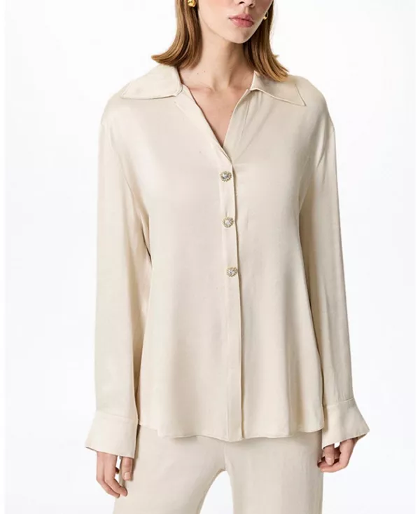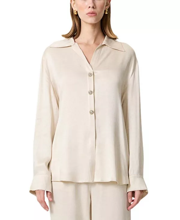 Рубашка с поясом и эффектными пуговицами. Nocturne, белый