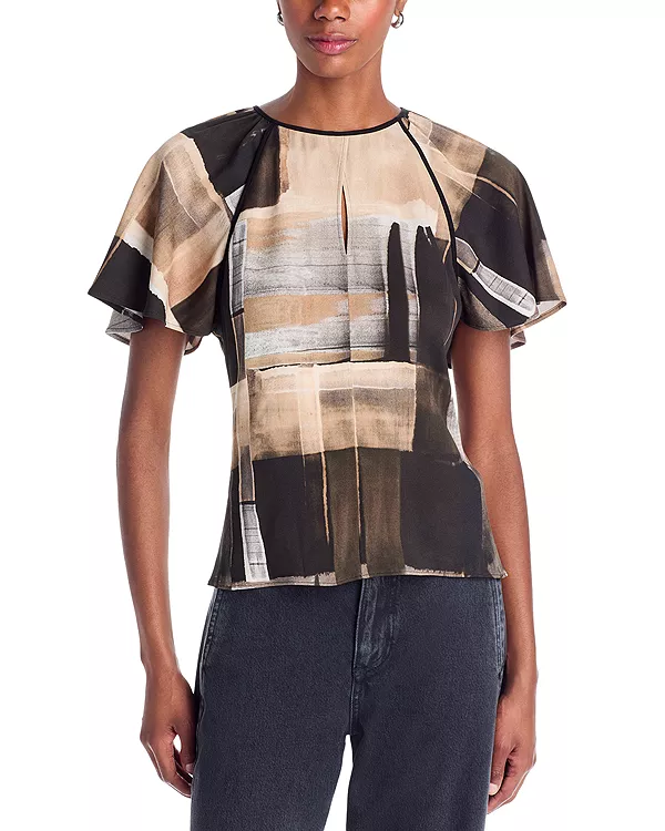 Особенности: Круглый вырез Короткие рукава-крылышки Застежка-молния и крючок сзади Принт по всей поверхности, вырез-капелька на передней части горловины Импортный товар