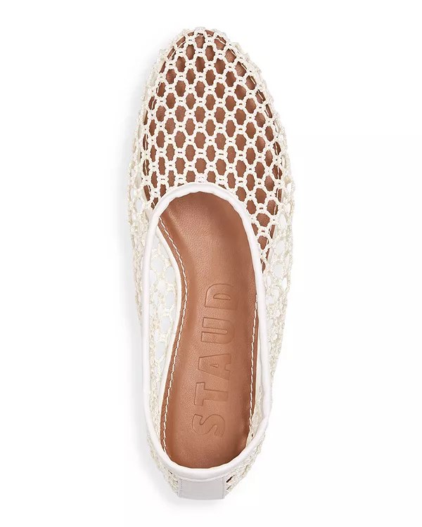 Женские балетки Alba из сетчатой ткани Staud, белый