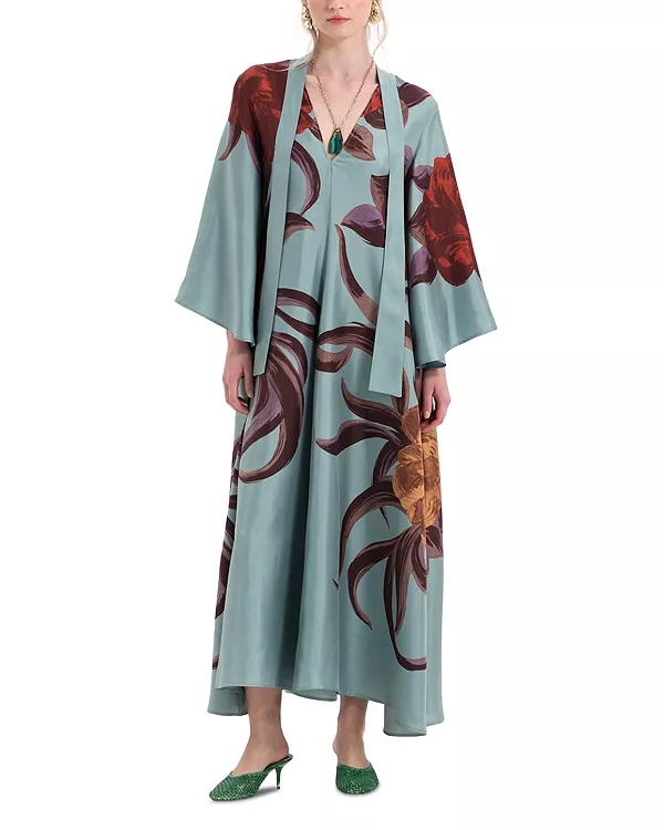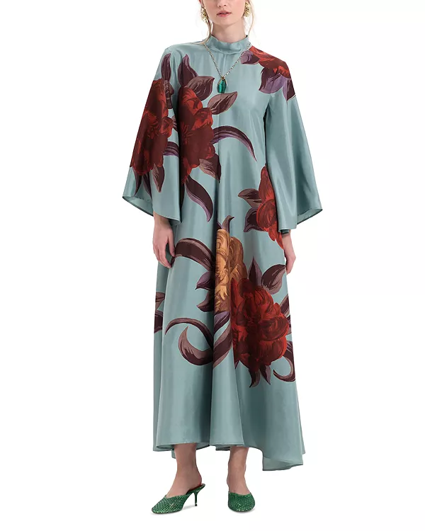 Платье Magnifico от La DoubleJ отличается легкостью и элегантностью, подчеркнутыми шелком производства Комо, украшенным ярким цветочным принтом с пионами.