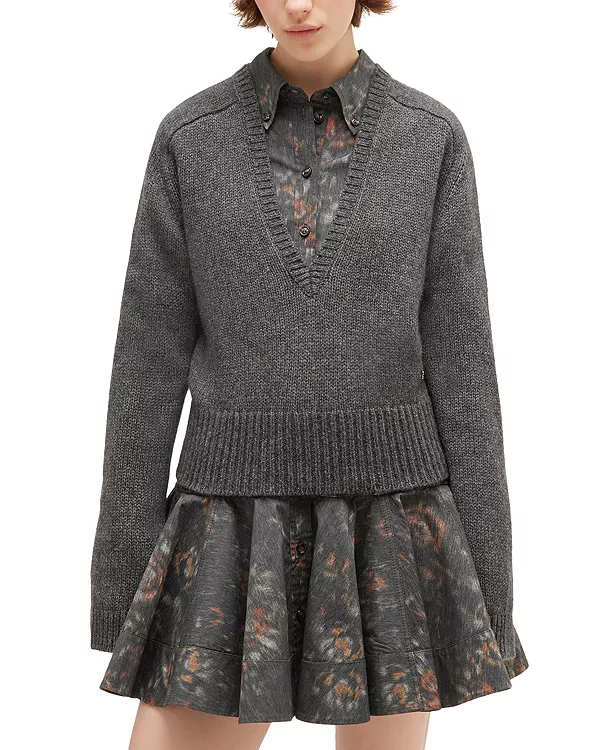 Свитер с глубоким V-образным вырезом Ganni, серый