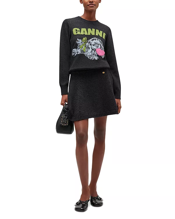 Мини-Юбка крупной вязки Ganni, черный 37 187₽