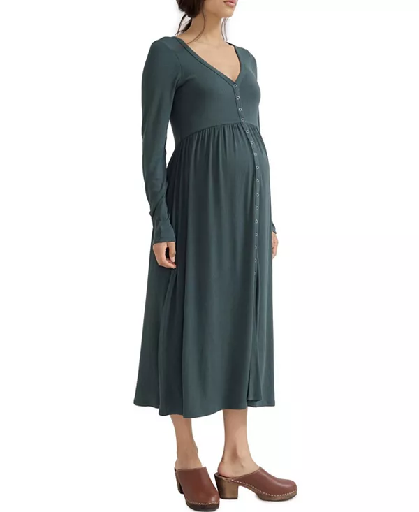 Самое мягкое ребристое платье для беременных и кормящих мам Hatch Collection, зеленый