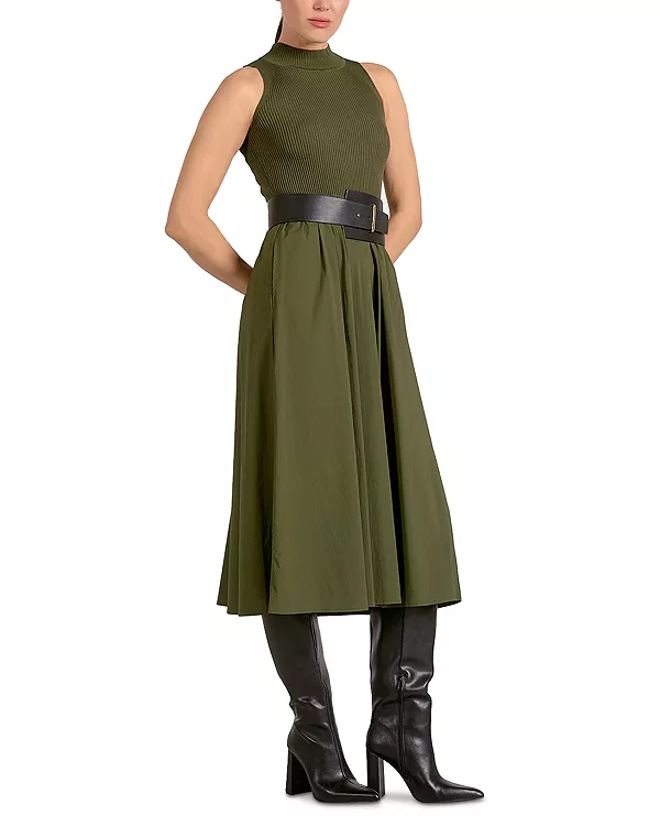 Платье миди из смешанных материалов Elan, зеленый