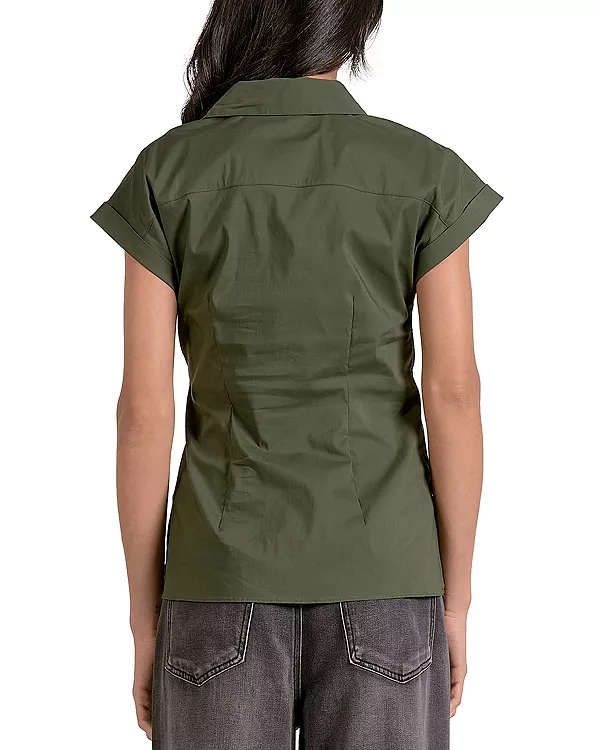 Рубашка с завязками на талии и пуговицами Elan, зеленый