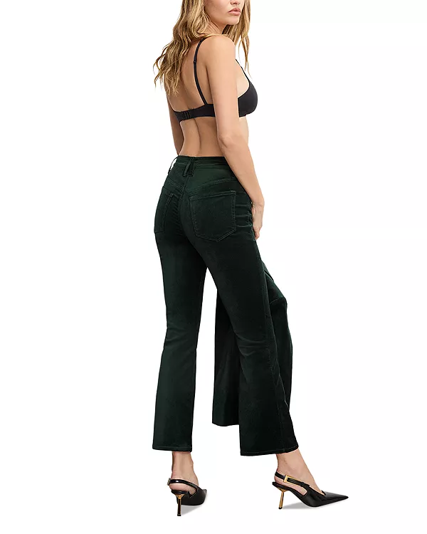 Бархатные брюки с высокой посадкой и расклешенной юбкой Good American, зеленый 16 777₽