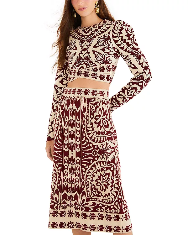 Вязаная юбка миди с рисунком ананаса Farm Rio, красный