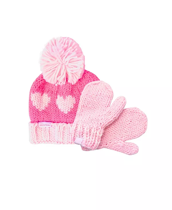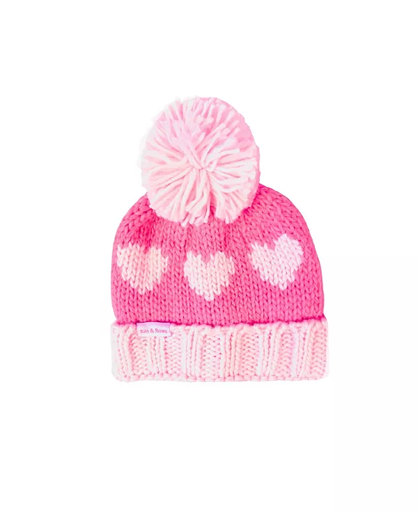 Детская шапка с помпоном и сердечками - для девочек постарше Bits & Bows, розовый