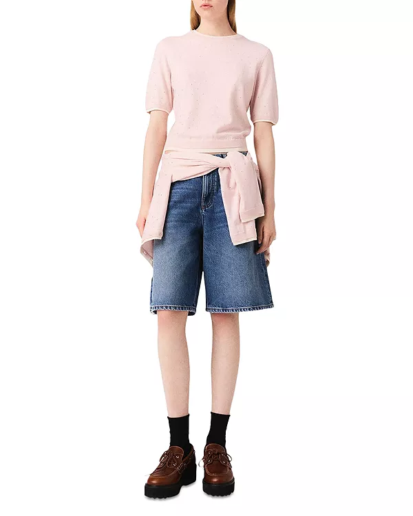 Шерстяной свитер с коротким рукавом Maje, розовый