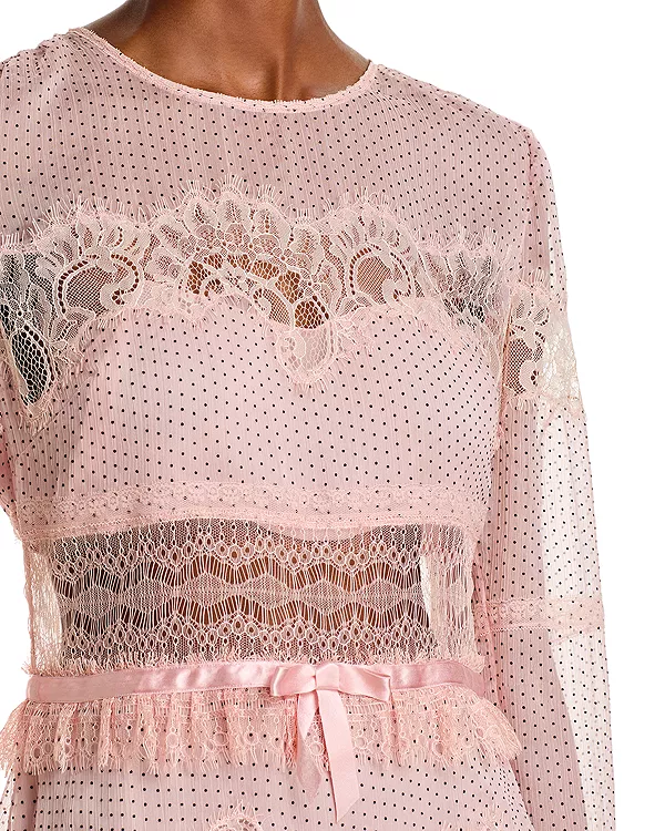 Полупрозрачные кружевные вставки на лифе, талии, рукавах и подоле
