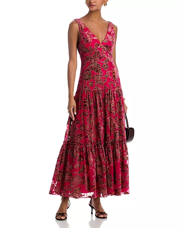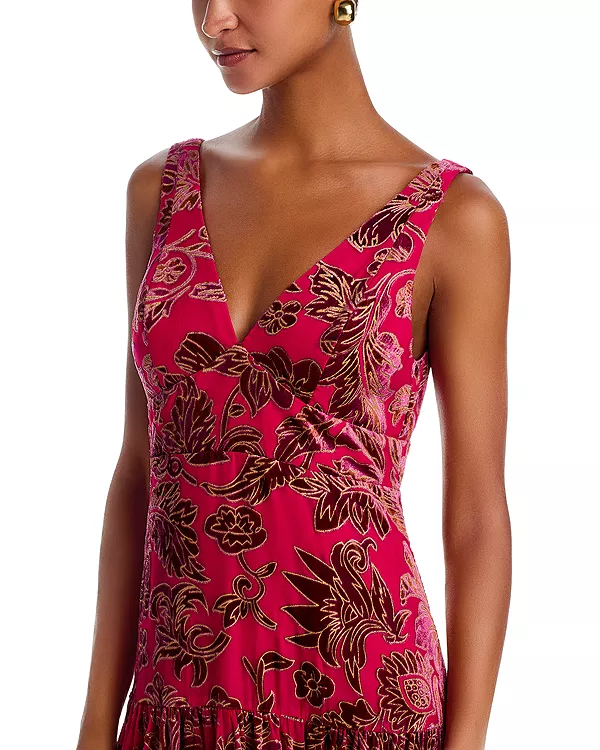 Эксклюзивное бархатное платье-макси с эффектом выгорания. Aqua, розовый