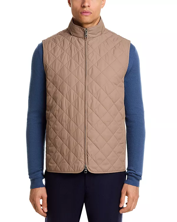 Особенности: Воротник-стойка Застежка на молнию Без рукавов Два боковых кармана на молнии Стеганый узор в виде ромбов по всей поверхности Ветро- и водоотталкивающий Импортный товар