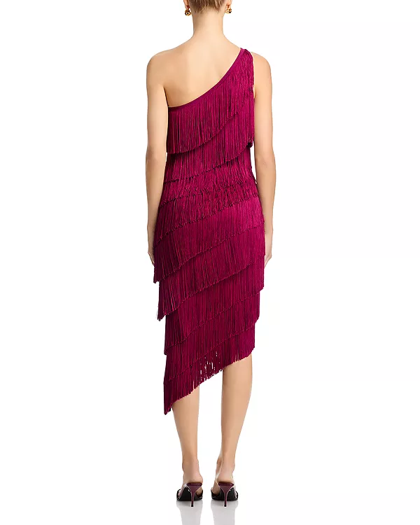 Асимметричное платье с бахромой Norma Kamali, фиолетовый