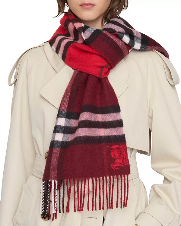 Бренд: Burberry Цвет: красный Шарф из двустороннего кашемира, жаккардового плетения с нашим фирменным мотивом «Рыцарь-всадник» и клетчатым узором Burberry контрастных цветов. Изготовлен на шотландской фабрике, основанной в 1797 году. Ткань промывается в местной родниковой воде и обрабатывается ворсянкой - сушеными цветами, которые протягиваются по поверхности кашемира, чтобы «поднять» ткань, создавая естественный блеск и ультрамягкую текстуру.