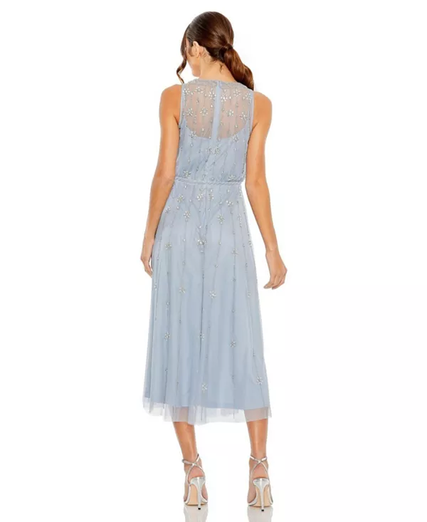Платье А-силуэта без рукавов с высоким воротником и отделкой Mac Duggal, синий