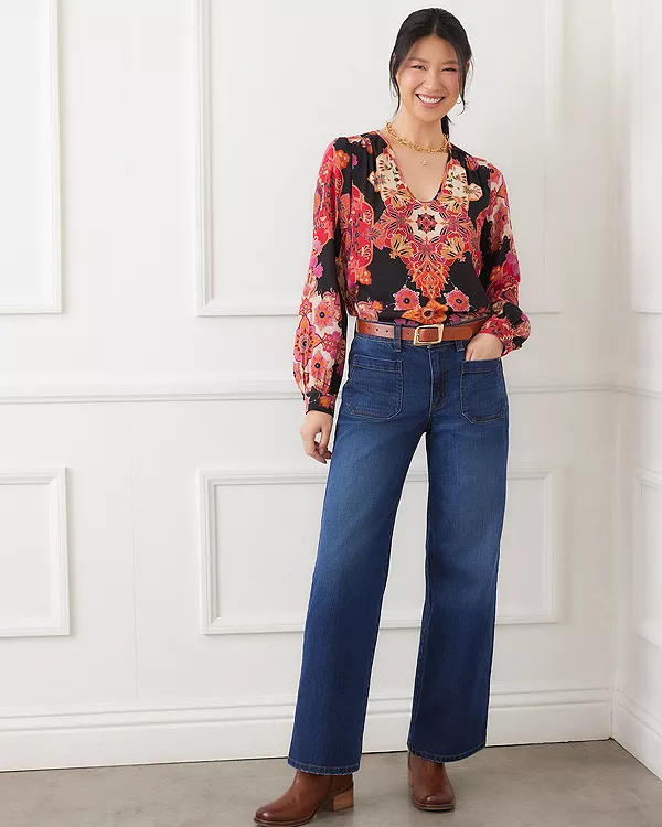 Топ с принтом и вырезом-лодочкой Karen Kane, мультиколор