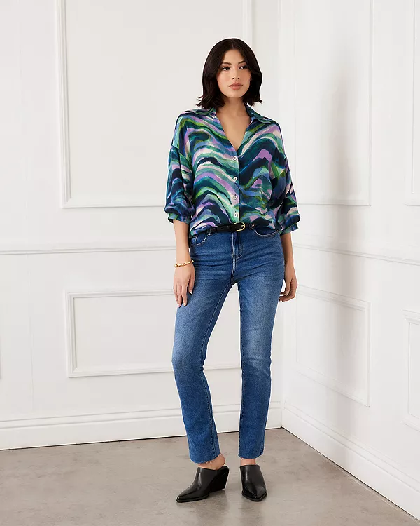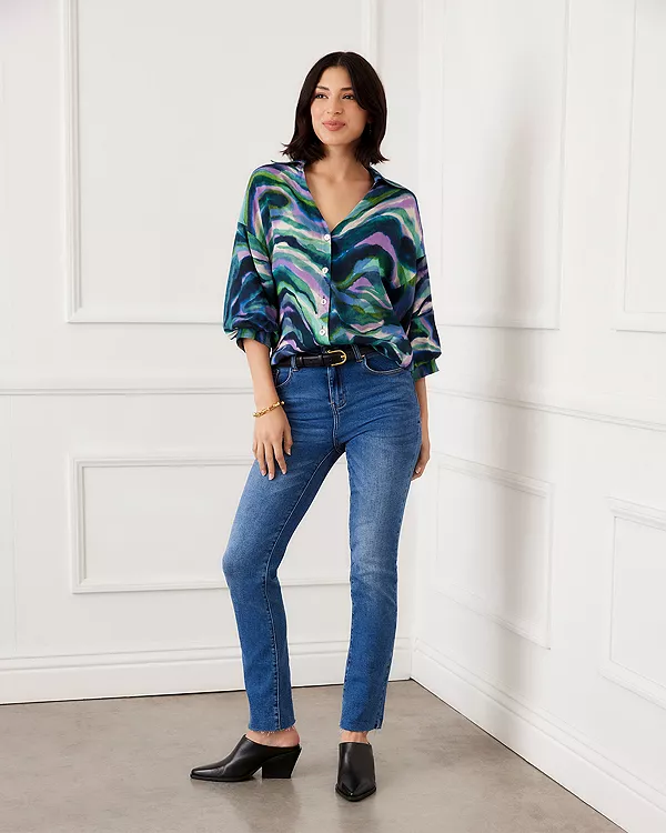 Топ с рукавами-фонариками и пуговицами спереди Karen Kane, мультиколор