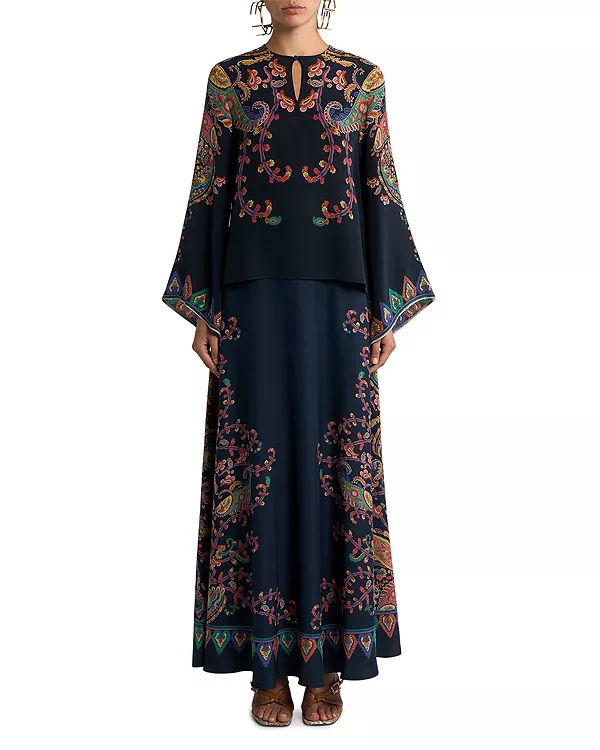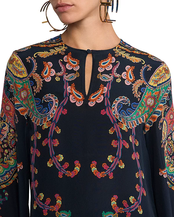 Шелковая блузка с расклешенными рукавами и вырезом-капелькой Etro, синий 116 247₽