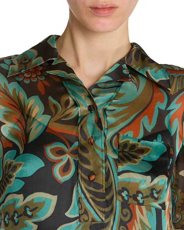 Шелковое длинное платье-рубашка с принтом Etro, черный