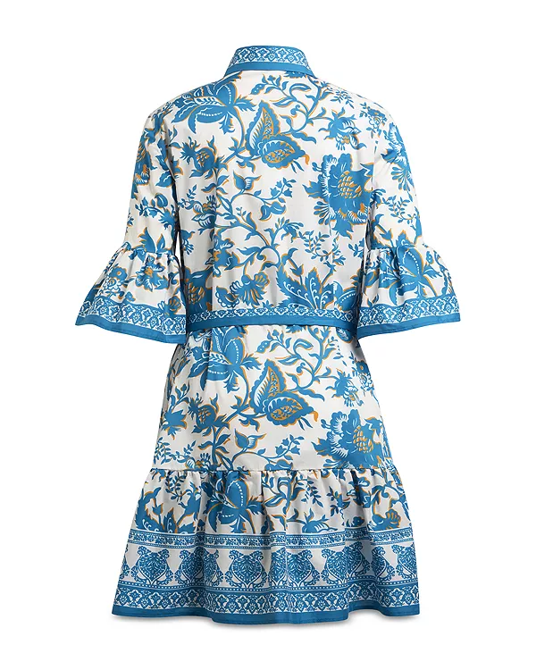 Мини-Платье-Рубашка с цветочным принтом и поясом Etro, синий