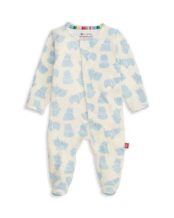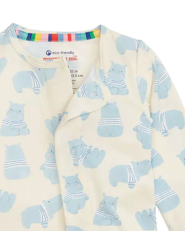 Магнитные застежки: магниты расположены вдоль шва от шеи до верхней части бедра для размеров до 0-3 месяцев и от шеи до промежности для размеров от 3-6 месяцев и старше
