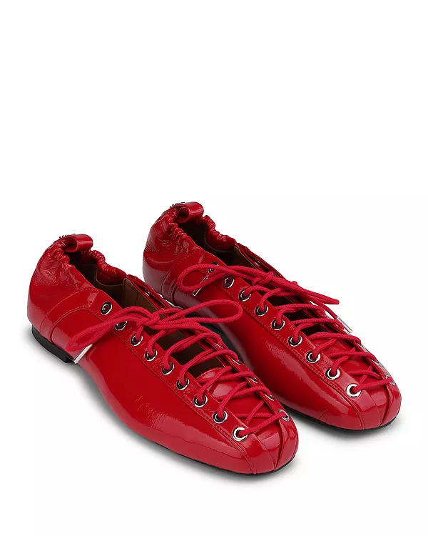 Женские балетки со шнуровкой и люверсами Ganni, красный
