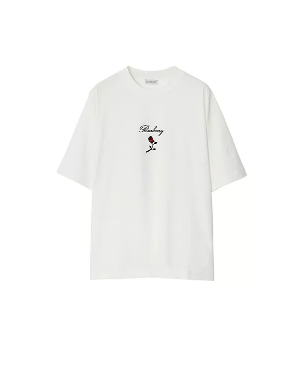 Хлопковая футболка с розовым принтом Burberry, белый