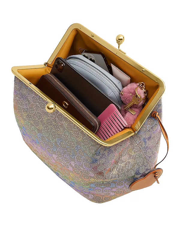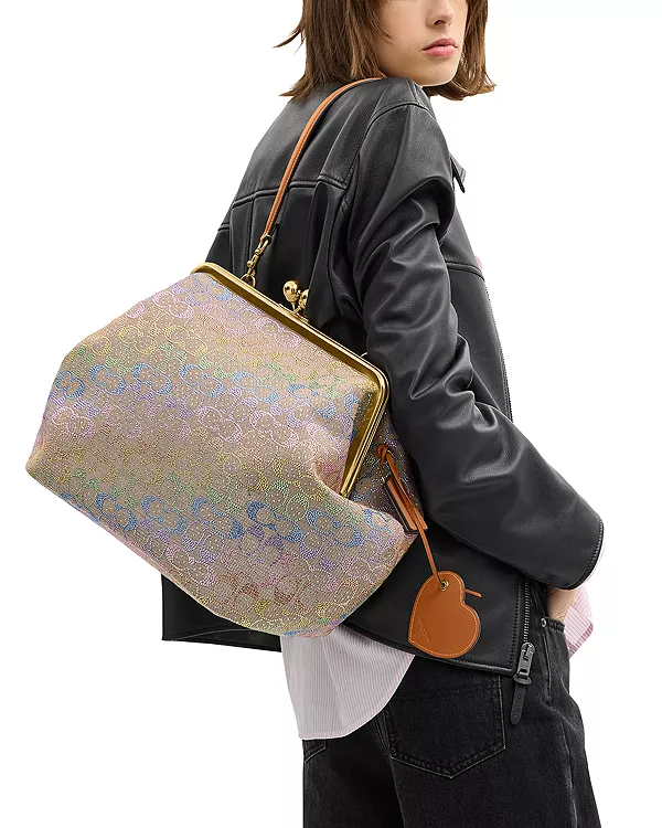 Сумка-Хобо Kisslock Frame Medium Crystal Signature Jacquard Coach, мультиколор 94 816₽
