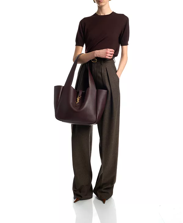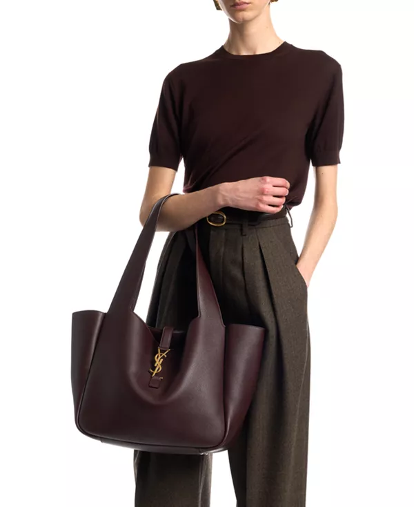 Сумка-Тоут Le 5 a 7 bea через плечо из зернистой кожи Saint Laurent, коричневый