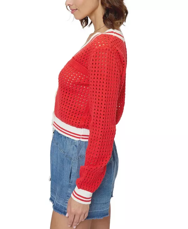 Бренд: Central Park West Цвет: красный В кардигане Junie Varsity Mesh Stitch сочетаются спортивный стиль и шик - легкая вещь, которая выделяется своим дизайном. Кардиган с открытой сетчатой вязкой обеспечивает комфорт и свежесть, привнося ощущение воздухопроницаемости в повседневный гардероб. Детали в стиле университетской формы добавляют игривости и современности, а свободный крой и ребристая отделка делают образ безупречно элегантным. Изготовленный из мягкой хлопковой смеси, Junie идеально подходит для того, чтобы накинуть его поверх топов, футболок или платьев для создания непринужденного, но изысканного образа.
