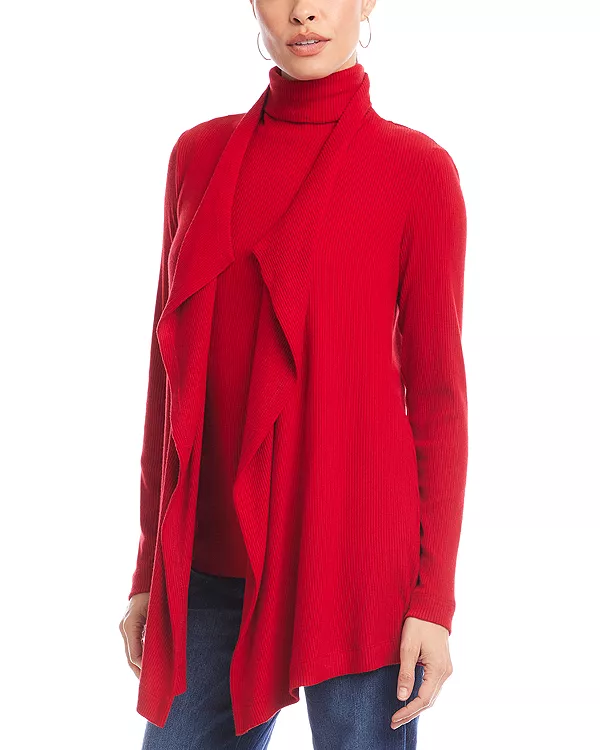 Кардиган с ребристой отделкой и драпировкой спереди Karen Kane, красный